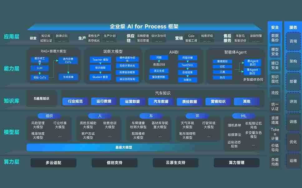 端到端的一站式AI工作空间深度融合了从企业战略规划到日常经营的全流程业务板块,,,,定向解决车企内部领域多、、部门多、、、链条长、、、场景碎片化等难题,,支持车企快速构建以AI为核心的生产力写作体系,,实现任务执行与AI能力的无缝集成与交互